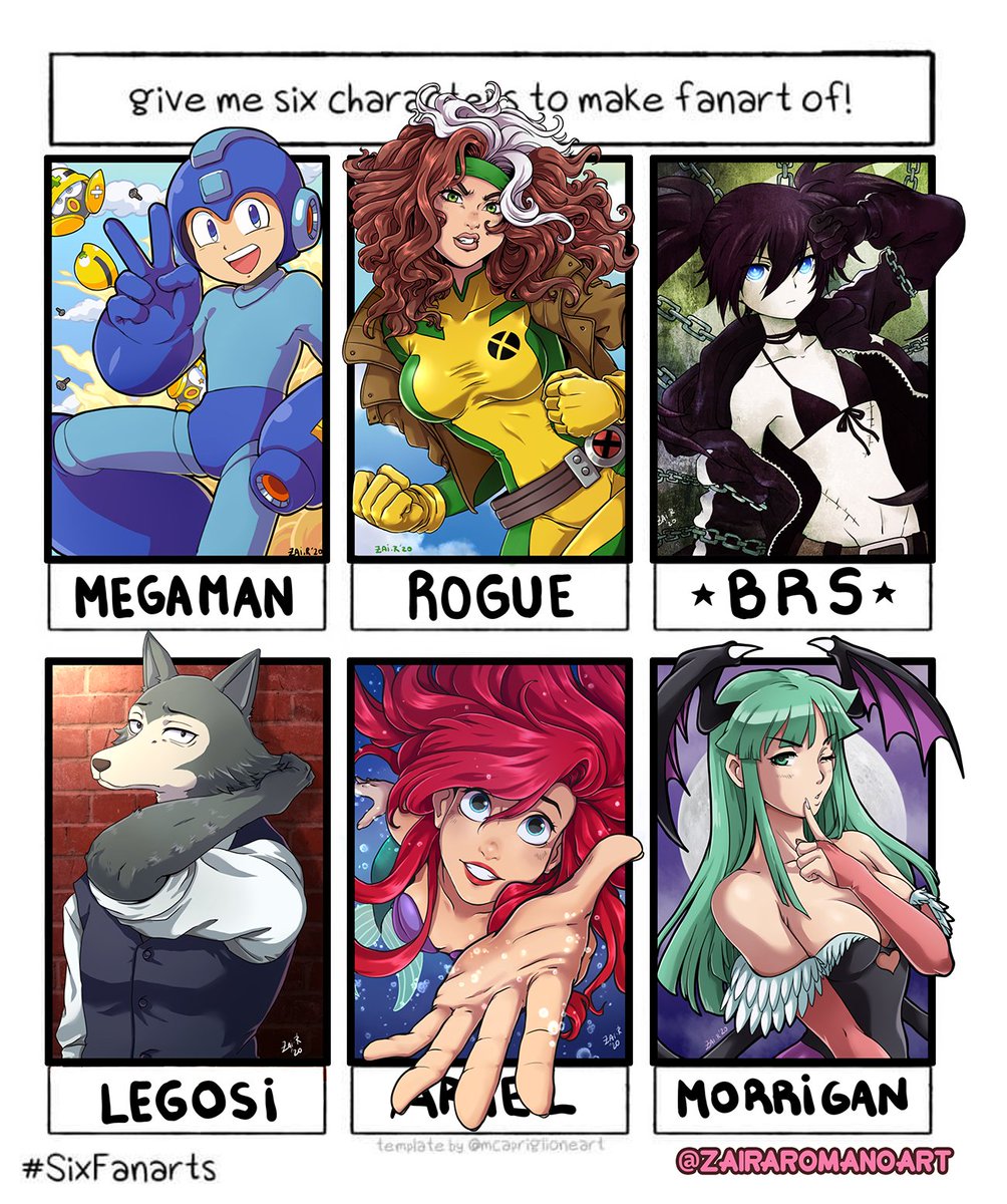 This challenge reminds me the reason I swore not to do any Challenge xD took me longer than I thought but is done! it was fun thoug :D #Megaman #Rockman #Morrigan #Legosi #Blackrockshooter #TheLittleMermaid #SixFanarts #SixFanartsChallenge