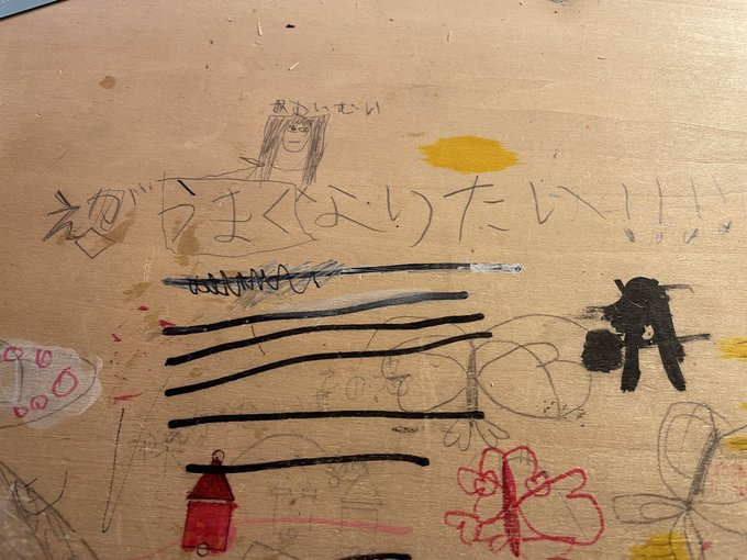 0 9 娘がよく書斎の机に落書きするのだが、「母むいむい」の下に「えがうまくなりたい!!!!!!!」と描いてあった、お父さんが君に伝えたいのは、 22/02/17 09:51