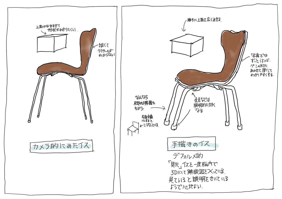 37 74 昨日言いたかった「カメラ目線」と「脳内目線」の差を図解しました。カメラ目線もいいけど、脳内目線の絵の方が説明的で心地よいことが多いのです。脳内目線は子供とかでも勝手にやるんですよね。 22/03/02 13:32