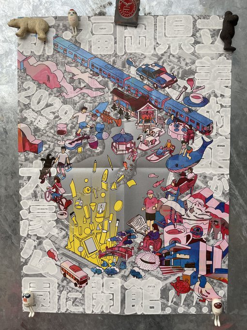 福岡県立美術館移転に関するポスターのイラスト描きました。CMYK プラス、特色銀プラス特色白の豪華仕様!かっこよ!