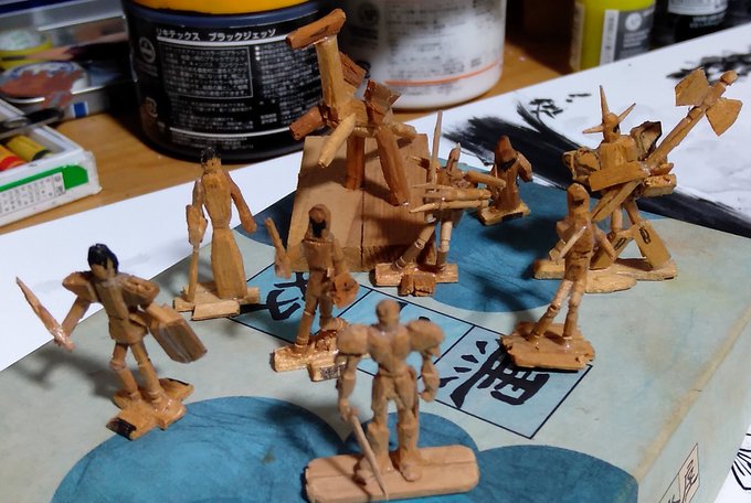 兄の見よう見まねでTRPGらしきことをはじめ、田舎だったので「買えぬなら 自分で作れば いいじゃない」と自作のウッドフィギュアを作っていた涙ぐましい少年時代(小中くらい)を思い出した。まだとってある。 twitter.com/HJ_gamemedia/s…