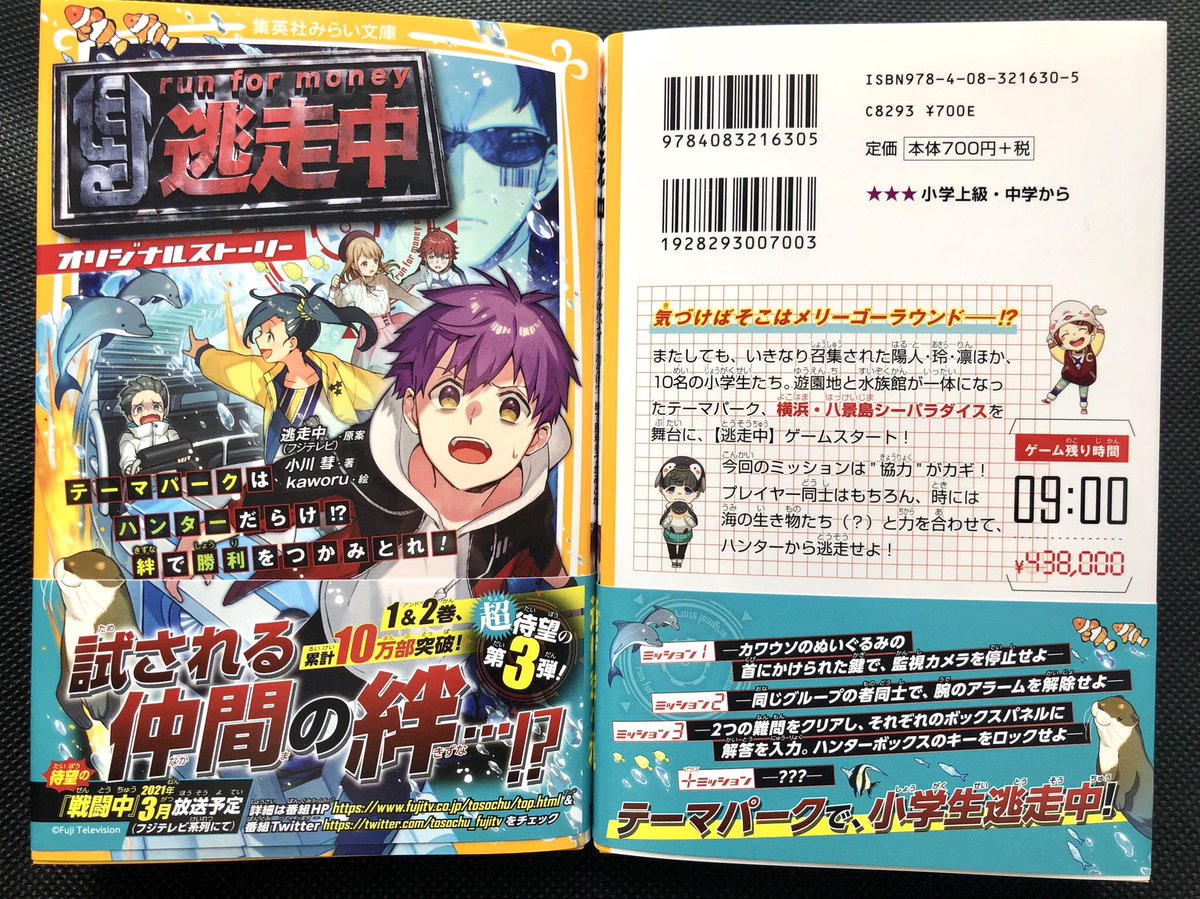 【仕事情報】 「#逃走中 オリジナルストーリー テーマパークはハンターだらけ!? 絆で勝利をつかみとれ!」著:小川彗先生 集英社みらい文庫さまより発売中です!イラスト周り担当しています、よろしくお願いします~🐬✨ #みらい文庫 miraibunko.jp/book/978-4-08-… books.shueisha.co.jp/items/contents…