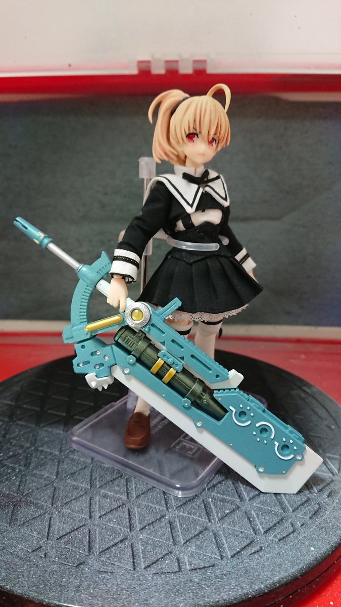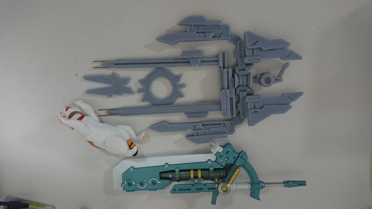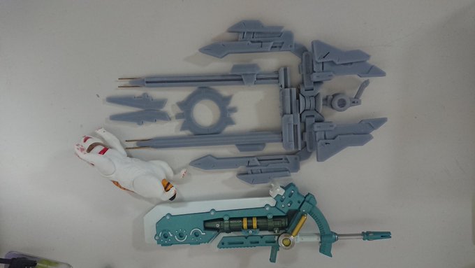 しおぱん工房。さん @Yoshuan_omocha の可変式マソレリックを仮組したぞ~ バリが多くて大変だったけどシャープでエッジが鋭い造形は◎ 歪みを直したらそのうち塗装する~ #アサルトリリィドール部 #AKG21