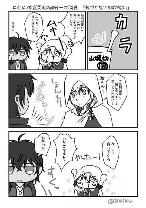 #くりんば版深夜の60分一本勝負 お題「気づかないはずがない」 20分オーバーと遅刻! んばちゃんはいつも2つ用意して1つ伽羅さんにあげている。