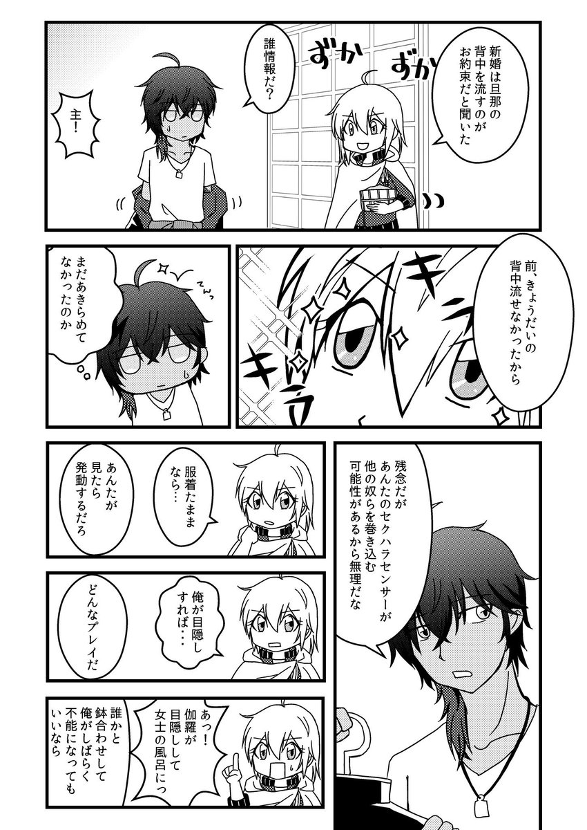 ますおさんとまうさんとユイさん1〜2ヶ月遅れのお誕生日おめでとう🎂くりんば♀描きました。 背中流すというますおさんのリクでした! うちのにょたんばちゃんは突っ走ります。伽羅さんはむっつりです。
