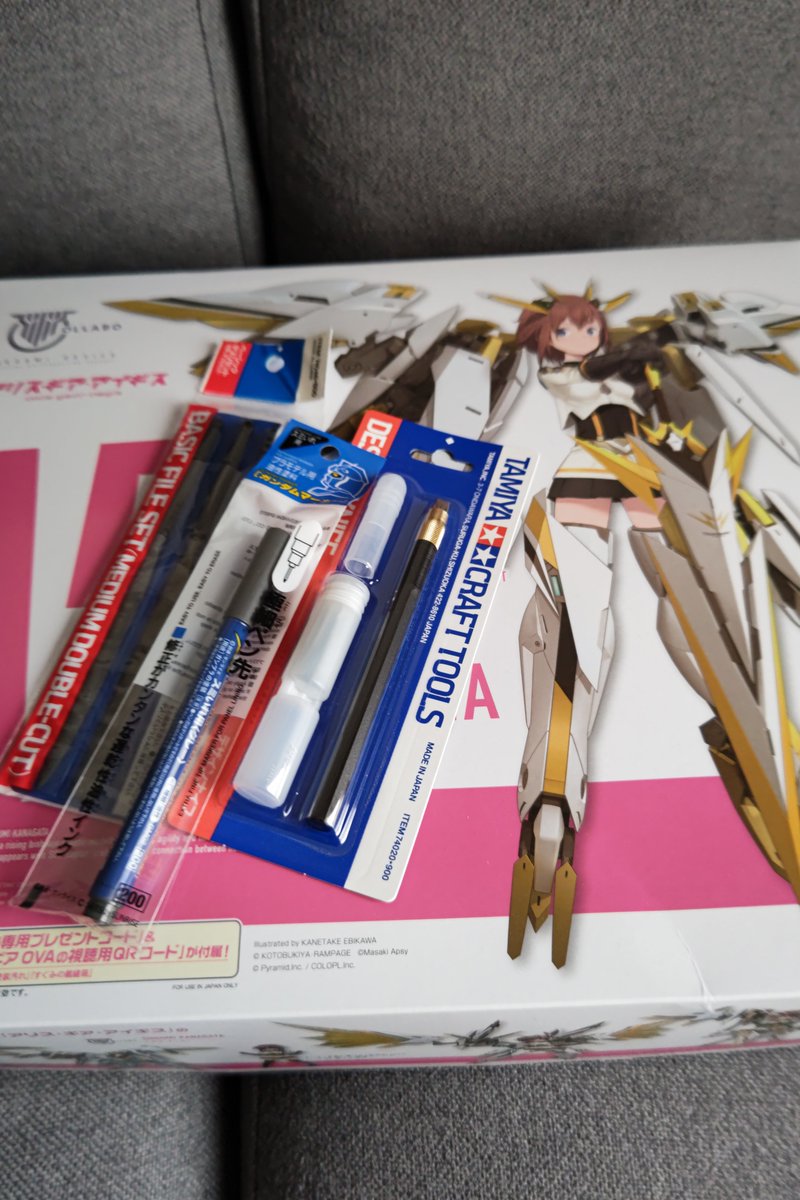 念願のコトブキニッパーを手に入れたぞ! 何となく必要そうなイメージで、ヤスリセット、デザインナイフ、スミ入れペンは先に用意したっす あと何がいるんだろ プラモデル素人なのでよく分からん ツヤ消しはした方が良さげか? 明日スプレー買いに模型屋行ってみよ #アリスギア #メガミデバイス
