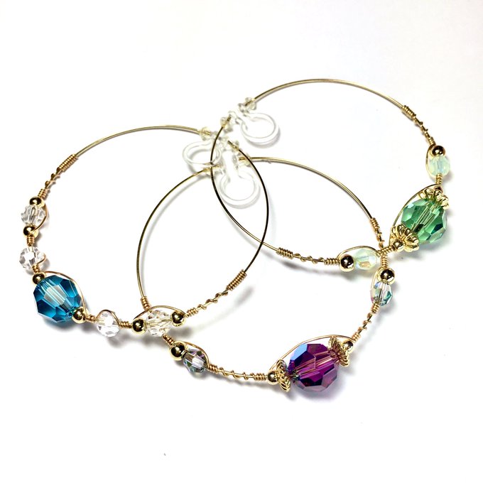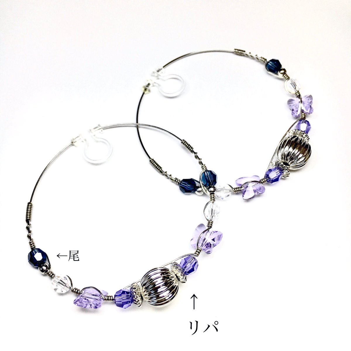 昨日作ったもう一つの概念アクセサリー😀✨デザイン的には昨日のと似てる。 ニンカリ風をなるべく残しつつのフープイヤリング。 木華太の尾リパ 蝶のスワロが華やかで可愛い🦋