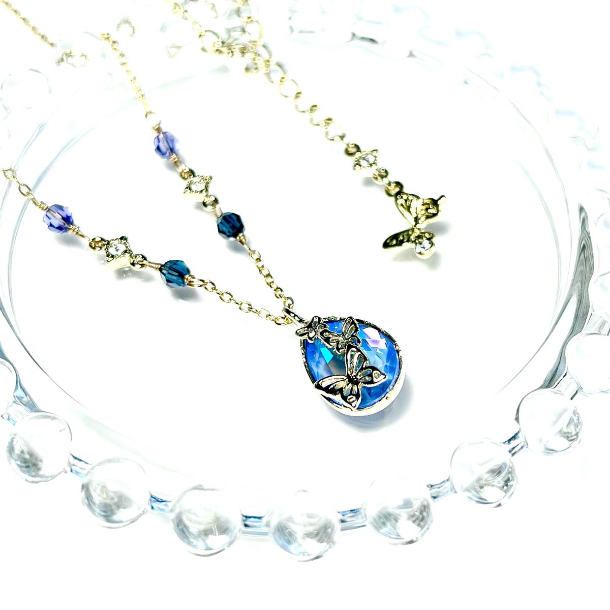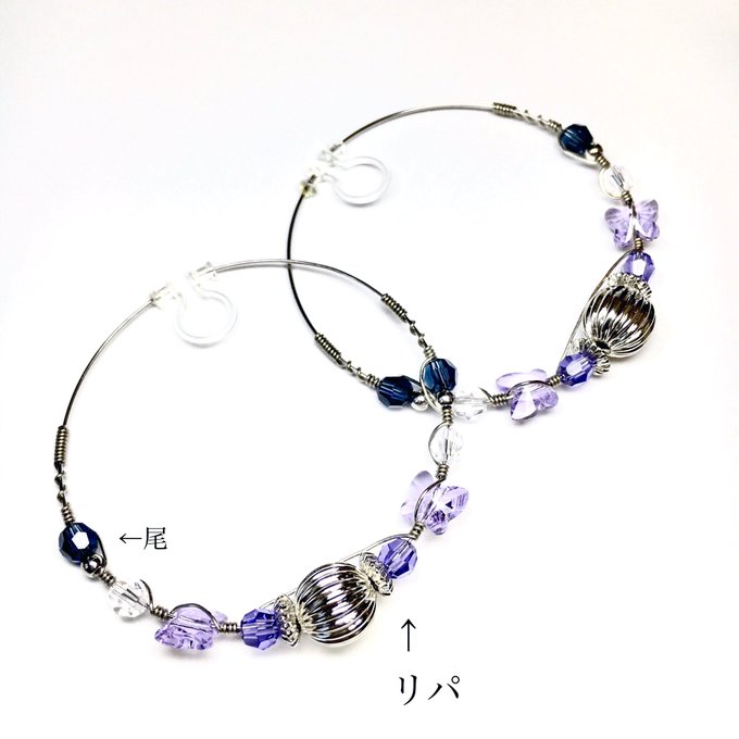 4 18 昨日作ったもう一つの概念アクセサリー😀✨デザイン的には昨日のと似てる。 ニンカリ風をなるべく残しつつのフープイヤリング。 木華太の尾リパ 蝶のスワロが華やかで可愛い🦋 20/11/10 16:23