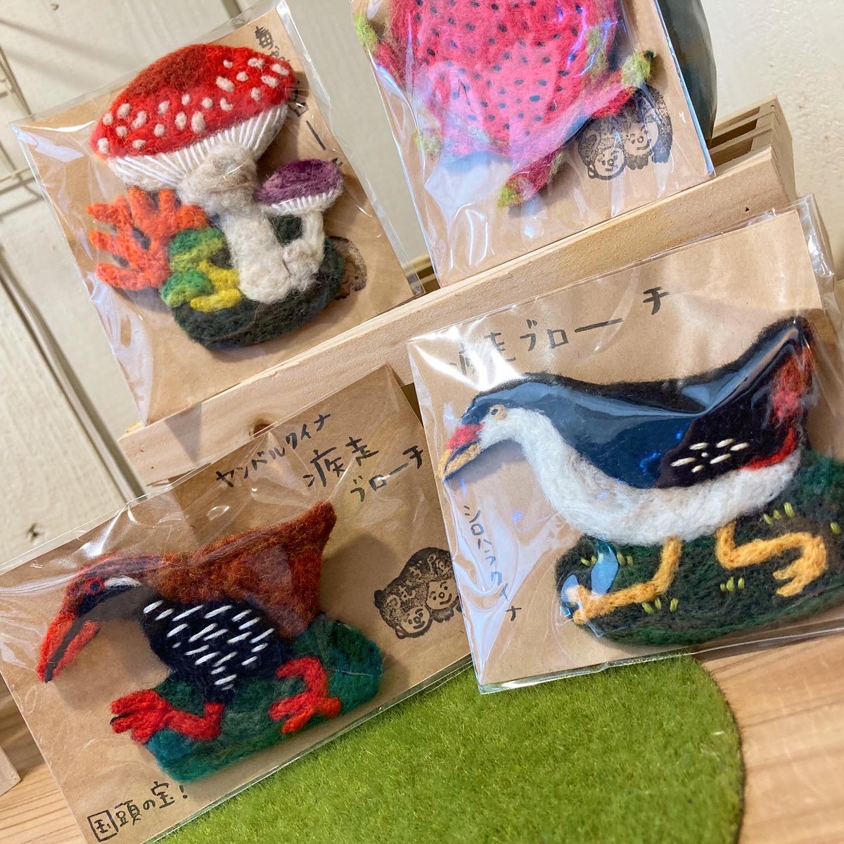 0 6 森の仲間たちも🌲ブローチで来店☀️ クイナさんも疾走中💨 #羊毛フェルト #フェルトブローチ #ヤンバルクイナ #シロハラクイナ #マンドリル #ゴリラ好き #blooch #雑貨屋 #雑貨好き #雑貨屋巡り #felt あちこちブローチ楽しんでください 20/11/27 11:49
