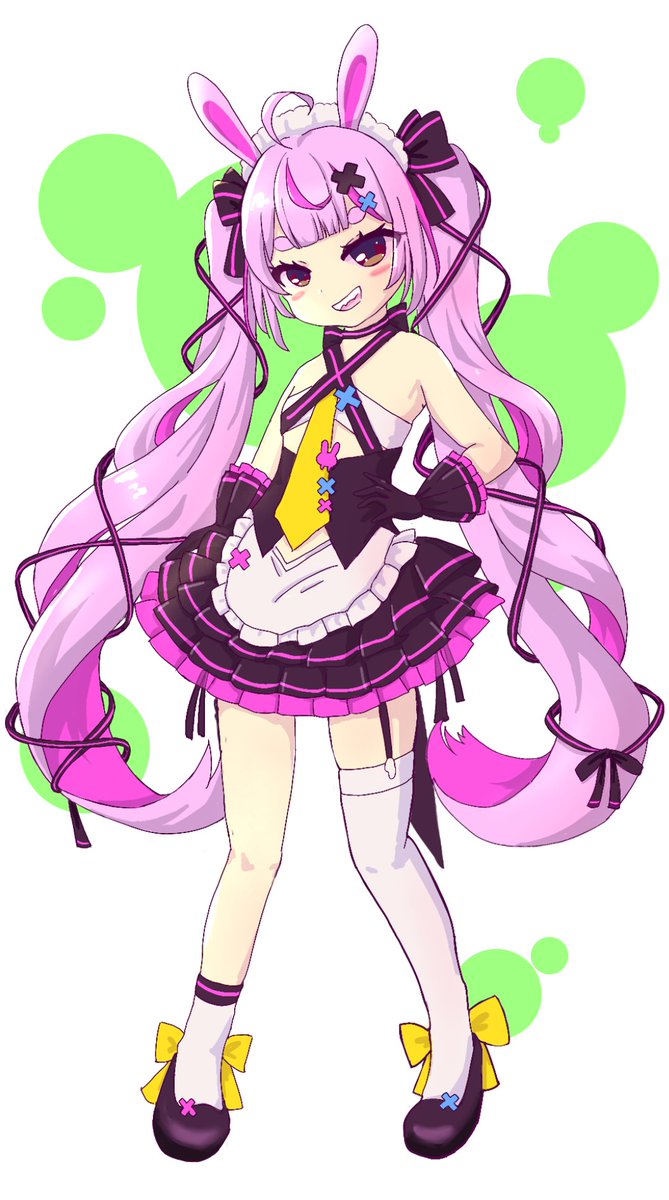 #まりあーと まりちゃん、ライブ2Dのお体の中野ちゃんコスみたいな組み合わせ絶対可愛い! ギザ歯、おリボン、メスガキ顔。