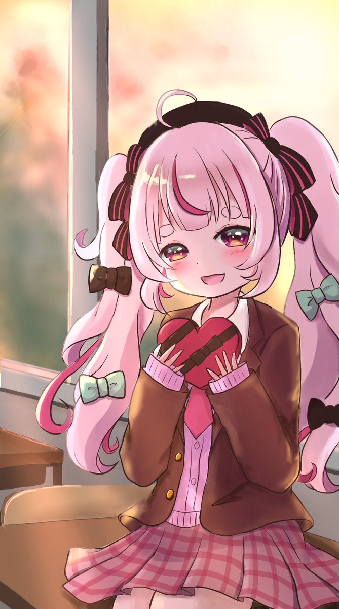 #まりあーと 遅刻ですがバレンタインのまりちゃんです。 チョコをあげる為か、貰う為か、おリボンを沢山付けてふわふわ髪にしておめかししてます。 ※うさ耳は学校というシチュエーションとの相性を考えた結果、すごく悩みましたが取り外した事にしました。 解釈違いだったらすみません…