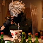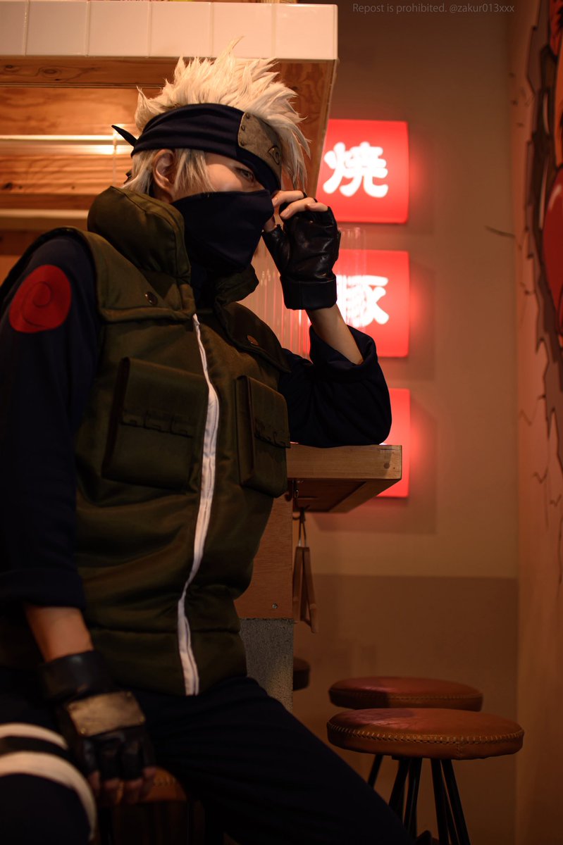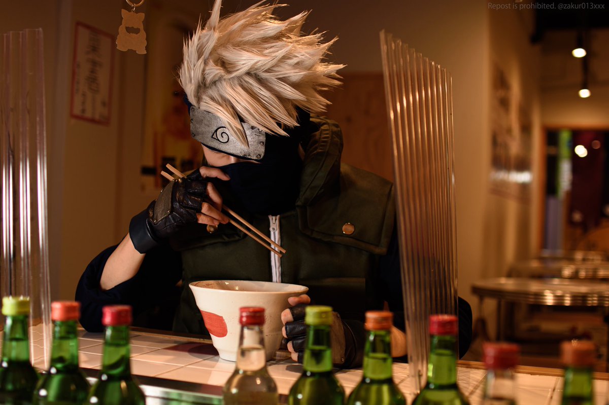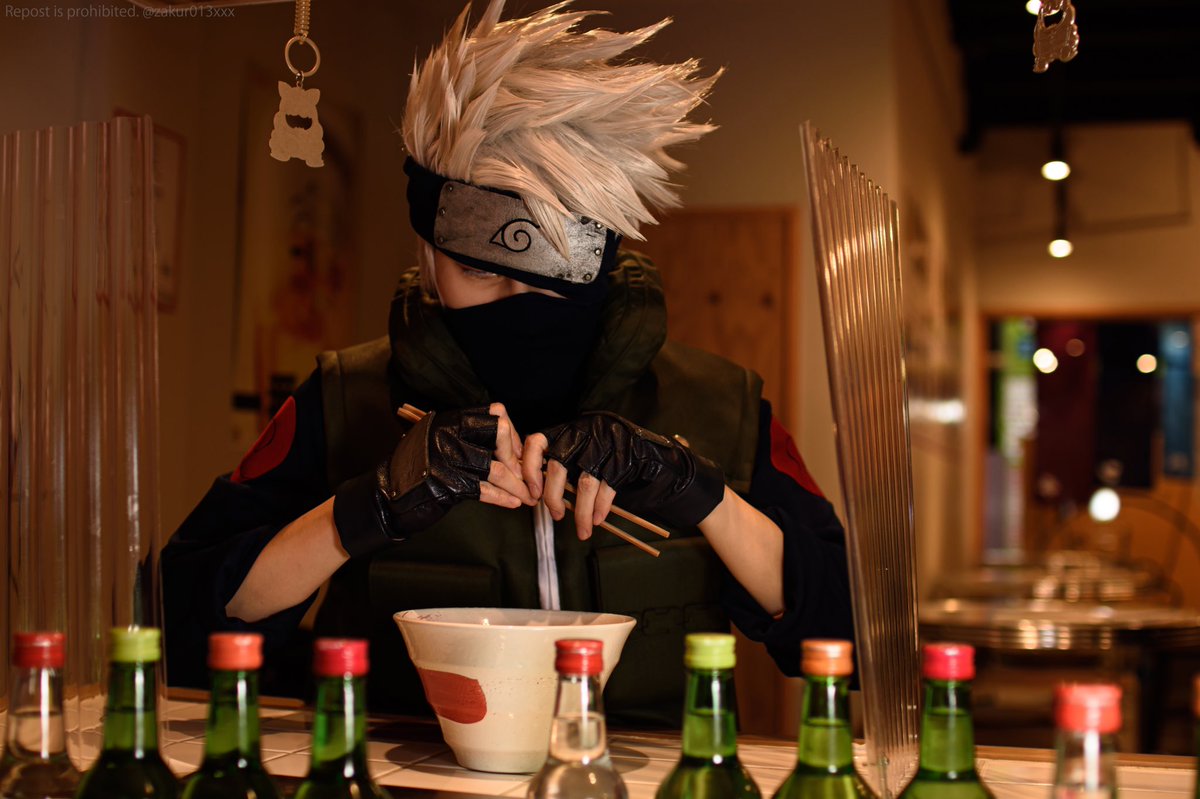 コス cos◇はたけカカシ 梅田の大衆酒場「チャーシューパンチ」さんと商店街の方のご好意で撮影させて頂きました! お箸と丼もお貸し頂きまして、ありがとうございました🙏✨✨ #コスプレ空中商店街 #阪急中通商店街