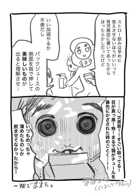 0 3 気軽にかけて楽しい、犬犬様に倣った2コマ育児漫画。 ストロー飲み二日目。 #育児漫画 #育児絵日記 #育児あるある #双子 #双子育児 #双子あるある 21/12/31 17:21