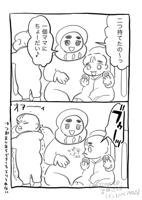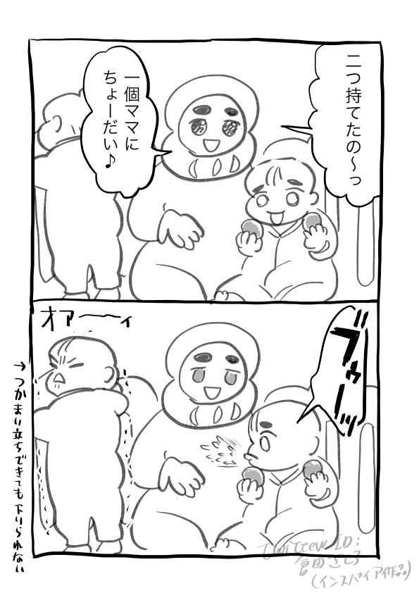 犬犬さまの育児漫画にインスパイアされて…というか真似して2コマ育児絵日記です😂たまに記録としてあげたい👶👶 #生後九ヶ月 #育児漫画 #育児絵日記 #双子育児 #双子 ※双子あまり関係ない内容