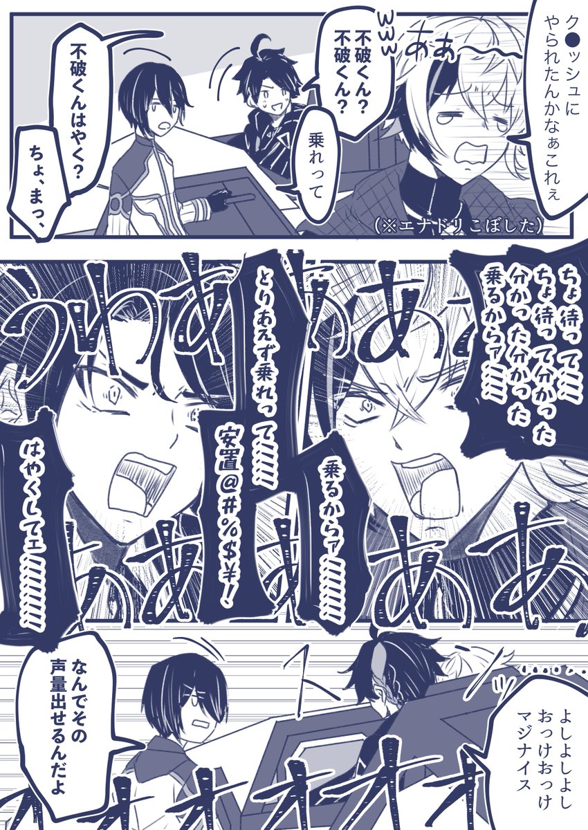 あらすじ(?):モブに喧嘩を売られたけど急いでいるので面倒ごとを避けるために無視したらソイツらに煽られた4人(1/2) プワのこのセリフで描きたかっただけ😌 ⚠️学パロヤンキー軸 ⚠️妄想.捏造.幻覚