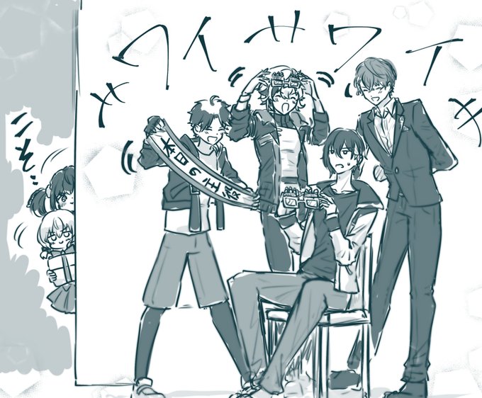 123 1207 あらすじ(?):モブに喧嘩を売られたけど急いでいるので面倒ごとを避けるために無視したらソイツらに煽られた4人(1/2) プワのこのセリフで描きたかっただけ😌 ⚠️学パロヤンキー軸 ⚠️妄想.捏造.幻覚 23/02/27 22:12