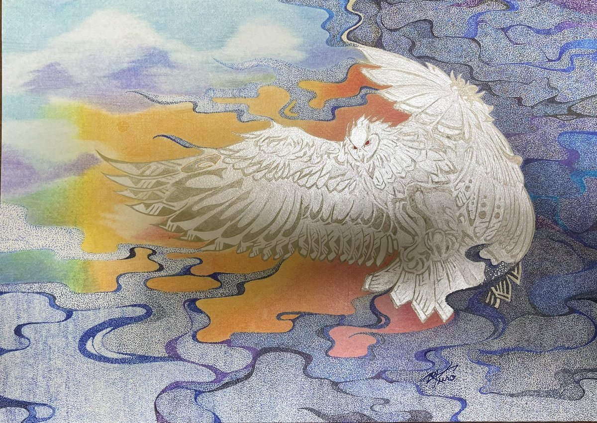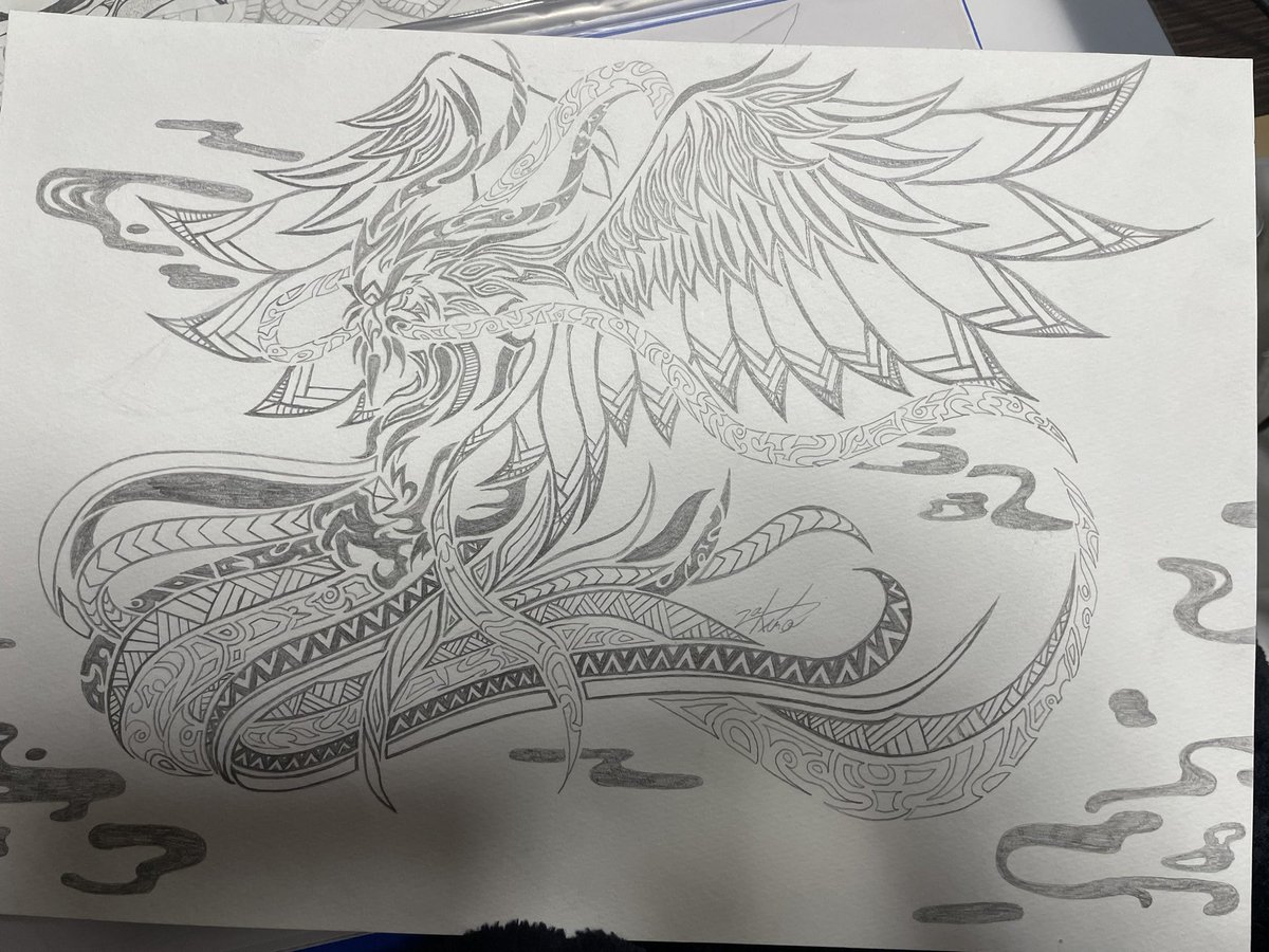【過去絵】フェネズク ミミズク+フェニックスを足して出来た子。 本当はミミズクを描きたかったんだけど、頭の耳みたいな羽が苦手で伸ばしたらこうなった。無駄に作画コスト高い子。 #トライバル #絵描きさんと繫がりたい #イラスト好きな人と繋がりたい