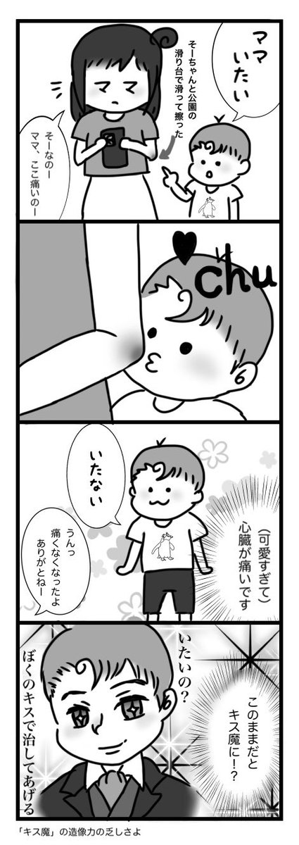絆創膏🩹か、ちゅー💋で治します #イラスト #育児漫画 #育児絵日記 #キス魔
