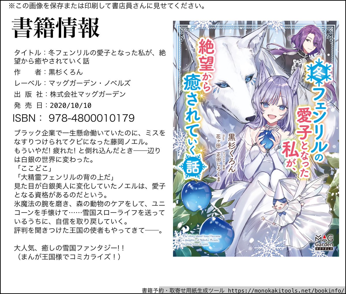 【新刊です】❄️✨ 「レア・クラスチェンジ!~魔物使いちゃんとレア従魔の異世界ゆる度~」7巻 → amazon.co.jp/dp/4866991070 「冬フェンリルの愛子となった私が、絶望から癒やされていく話」2巻 → amazon.co.jp/dp/4800011345 「冬フェンリル(コミカライズ+単行本)」 → comic.k-manga.jp/title/122337/pv