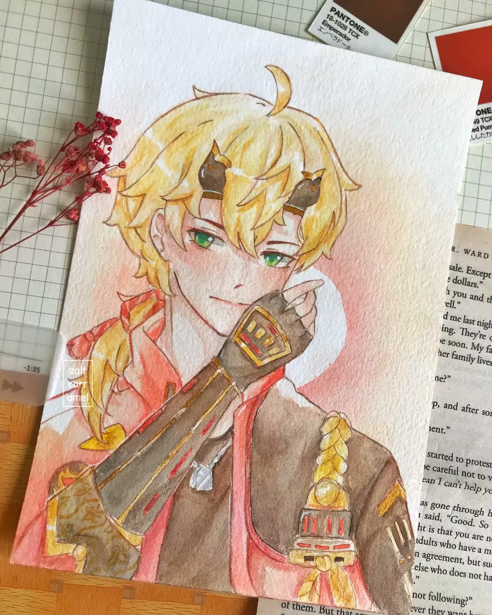 art request from @anotherthania 💓💖💞 idk how the hat is work, hopefully it doesn't looks so bad 😥 #art #zonakaryaid #watercolour #jojo #jotarokujo #Fanart #artrequests (pls untag in comment)