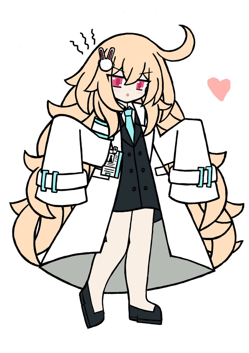 #絵描きさんと繋がりたい #絵描きさんフォロバ100 これは 金髪ボサボサクソデカアホ毛ジト目で赤目(?)生足ダボダボ萌え袖白衣天才ロリロリ幼女めんどくさがり屋天才研究員 デジタル絵何も分からない