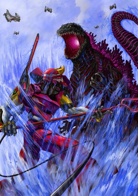 #エヴァンゲリオン #ゴジラ #絵描きさんと繋がりたい #イラスト好きな人と繋がりたい エヴァ2号機vsシン・ゴジラ