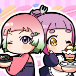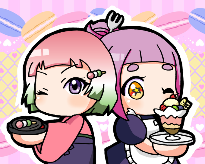 みみ(耳)さん(@numa_mimikaki)の上井戸れいすちゃんとうちの四丹瀬和花子、和洋な店員コンビを描かせていただきました! 二人とも前髪短くてパッツンなところまで似てた…! #勝手にパワプロオリキャラファンアート