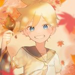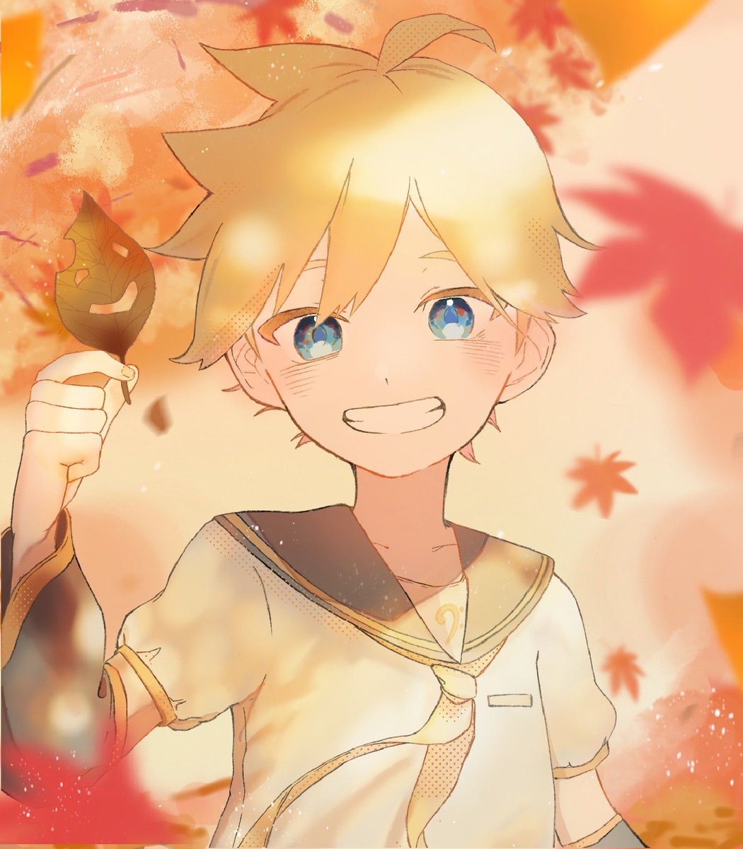 『帰り道🍁🍂』 この後初音ミクちゃん(ミク姉ちゃん)に見せるため、綺麗な紅葉とか変な落ち葉を持ち帰る鏡音兄弟ほのぼの〜👏 #鏡音リン #鏡音レン