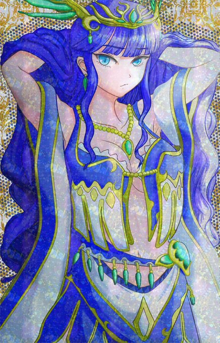 #ドラポ版深夜の真剣お絵描き60分一本勝負 お題:9周年特別企画!初心に帰って初期実装SS ラピスラズリ(100分) ラフに無理やり色のせてみた・・・ こんだけ主張の強い剣二本も持っててスキルは回復なんだよなぁ。 ちなみにポーズは不死隊の儀礼だよ!w