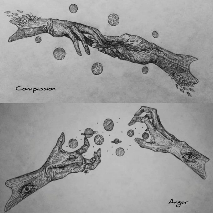 Who do you want to be today? Just a simple comparison to show how hands can actually give off certain emotions.. #zartstrophic #originalart #inktober #inktober2020 #modernart #hands #figurativeart #figurativeartist #evil #wrath #compassion #gestures
