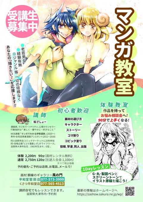 #桜ざしょーのマンガ教室 本日草津教室開校中です🤗 体験・相談受付中!💐 第2・4(金)~18:00まで くさつ平和堂3F 画材額縁の風の門 tel 077(565)4513 zashow.sakura.ne.jp/wp/mangaschool… #漫画家志望さんと繋がりたい #イラスト好きな人と繋がりたい #滋賀県 #草津市 #平和堂 #画材 #教室 #漫画家 #コピック