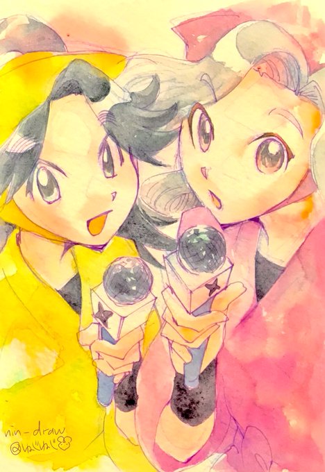 7 66 #nin_draw 『マリンスタイル(サザエ)のヘアアレンジをして海辺で戯れる作法上級生コンビ』 共犯の髪結くんは既に浜辺で黒焦げです。海のありがたみとは。 23/03/16 23:37