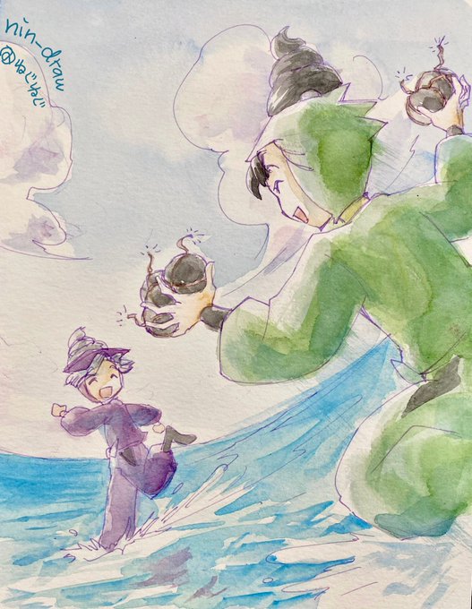 2 46 初描き網問くん!久しぶりにんどろ&水彩‼︎ 水軍中お頭を除いて誰が好きかと問われたらこの子‼︎かわいい‼︎ #nin_draw 23/05/17 23:09