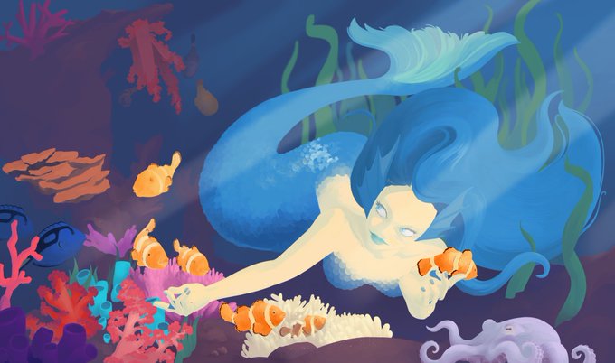 I know it just past May but i finally managed to finish this yesterday. Had a really chill time doing the details 🐟🐠🪸🐙🧜♀️ #artistsontwitter #commissionsopen #digitalart #mermay2022 #mermay