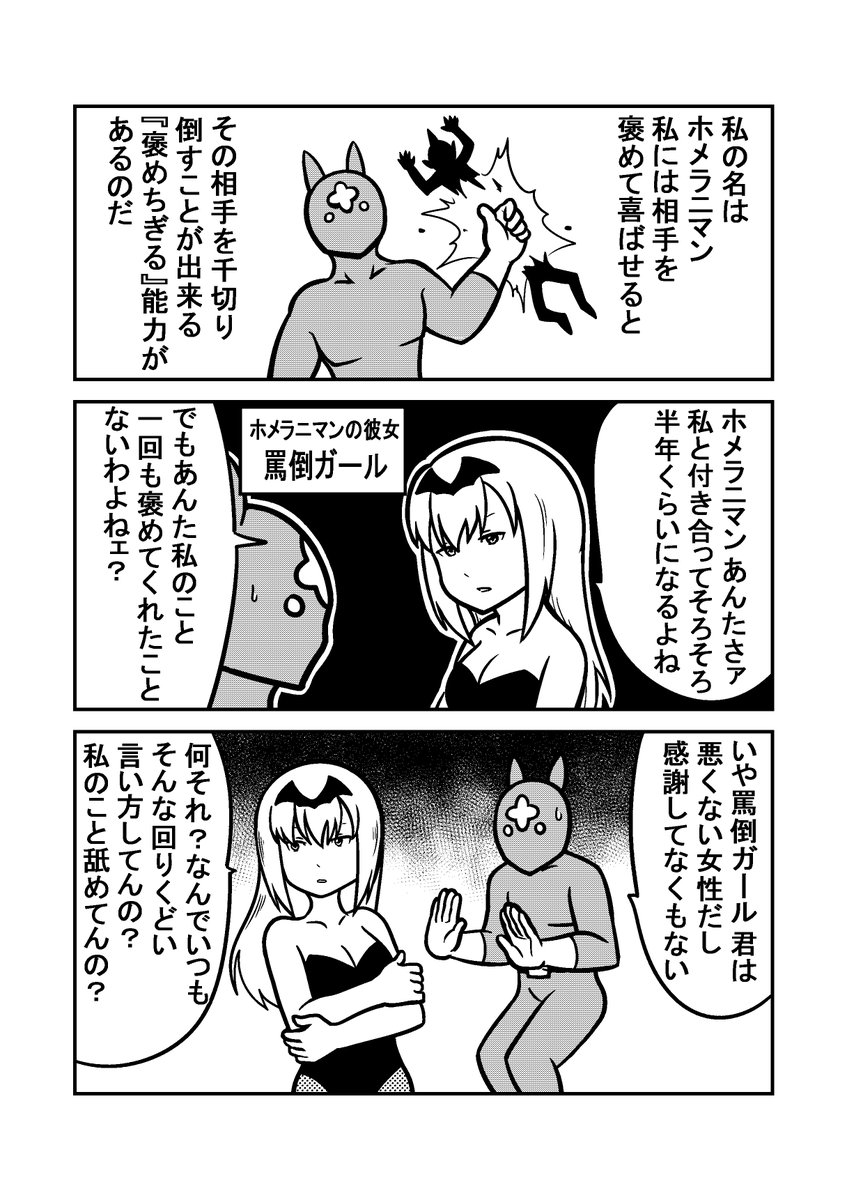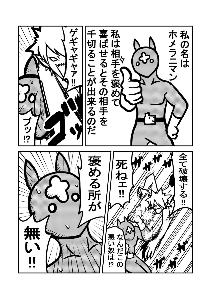 褒めちぎる系ヒーローの漫画【ホメラニマン】 #漫画が読めるハッシュタグ #創作漫画 #4コマ漫画