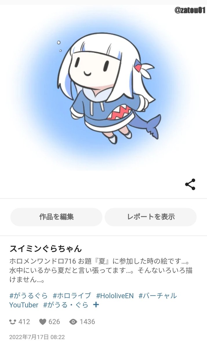 2 6 これですね…(pixivで) #今年も残りわずかなので今年一番伸びた絵を貼る見た絵描きさんも強制でやる #gawrt 22/12/08 22:20