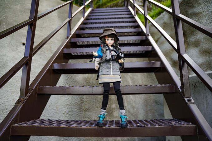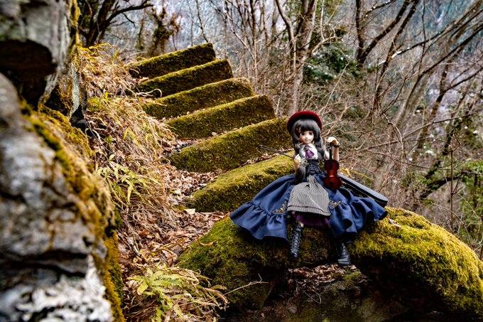去年の飯給(いたぶ) 階段の下には100人単位で人だかり、菜の花と桜と水田に写る列車を待っている でも、ちょっと階段を登ればこの通りの静寂 やがいさつえい/過去 #今夜のドール撮影120分一本勝負