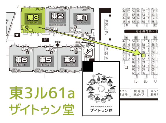 スパコミ30-day1-( 超神ノ叡智 2023)5/3 東3 ル61a で頒布予定のおしながきと配置をまとめました🌱 アランナラ雰囲気絵本とグッズです。 アクセは難解すぎて微妙な数しかありませんが..よろしくおねがいします..>< (ت)サンプル+でかめのおしながきはこちら pixiv.net/artworks/10731…