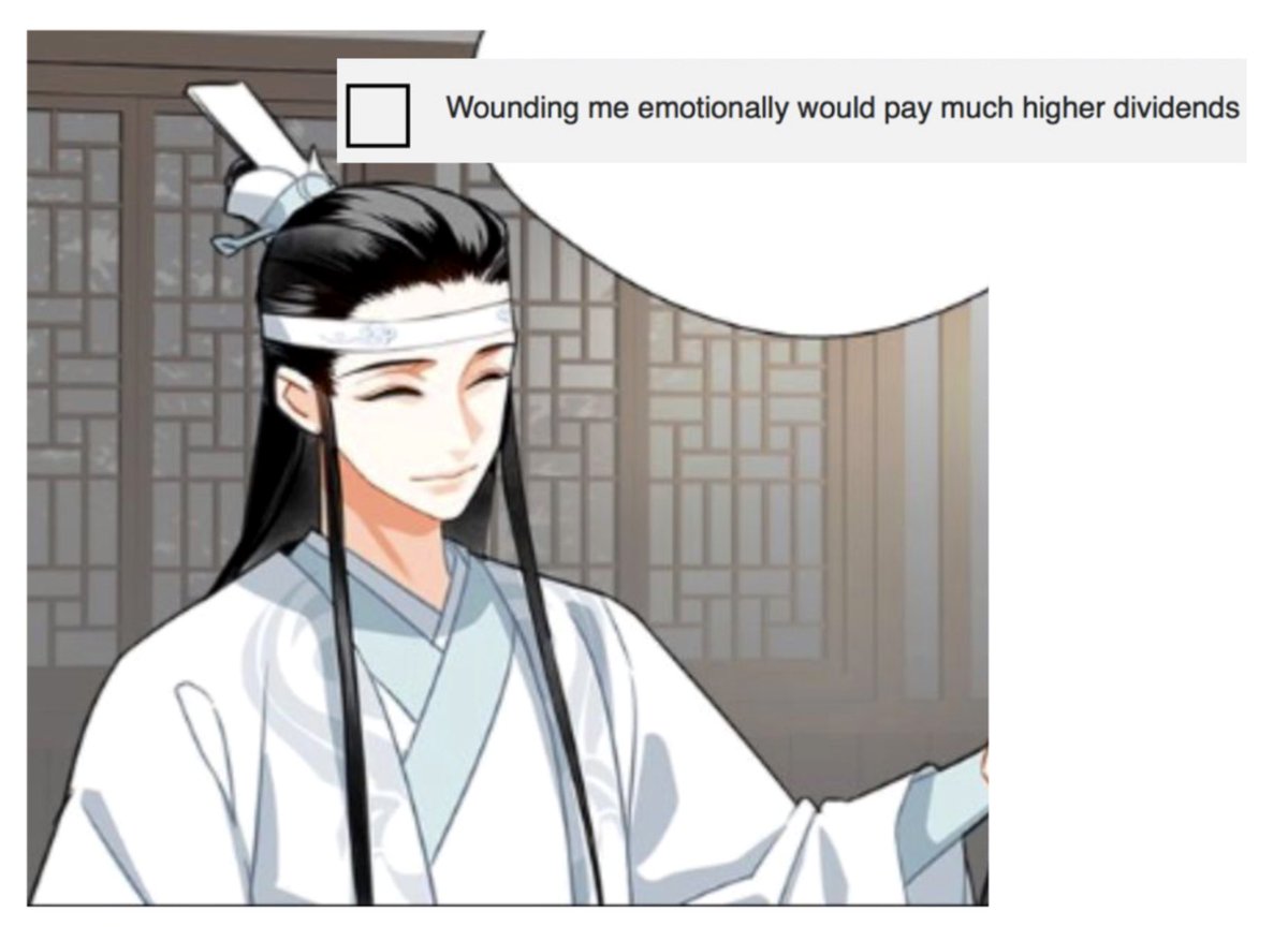 Jiang Cheng and Lan Wangji create an infinite loop of didi power. twitter.com/_porcelainblue…