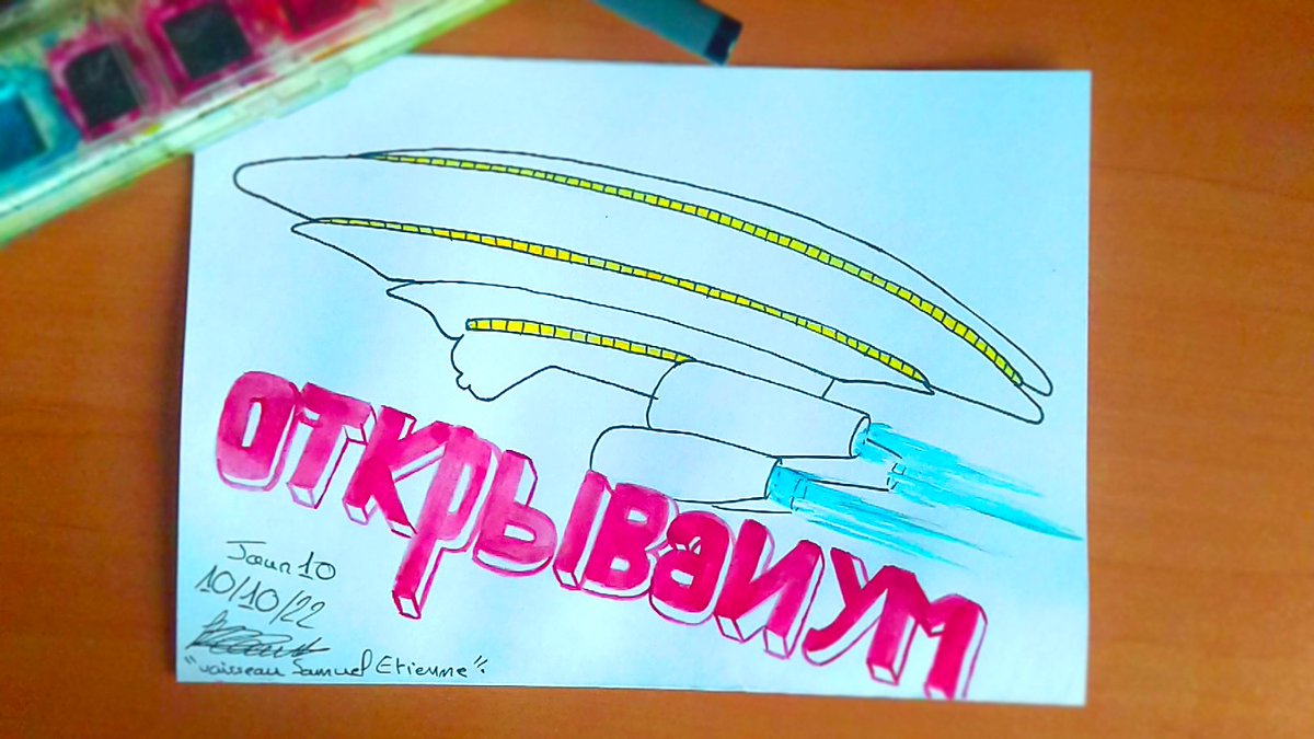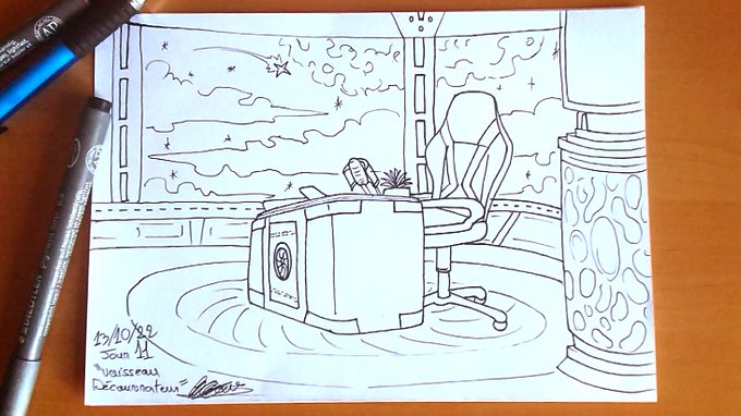 Et paf je rattrape mon retard ! Entre un cerveau et les vaisseaux spatiaux de @PAPAJ0U et @SamuelEtienne dessiné pour le #inktober2022