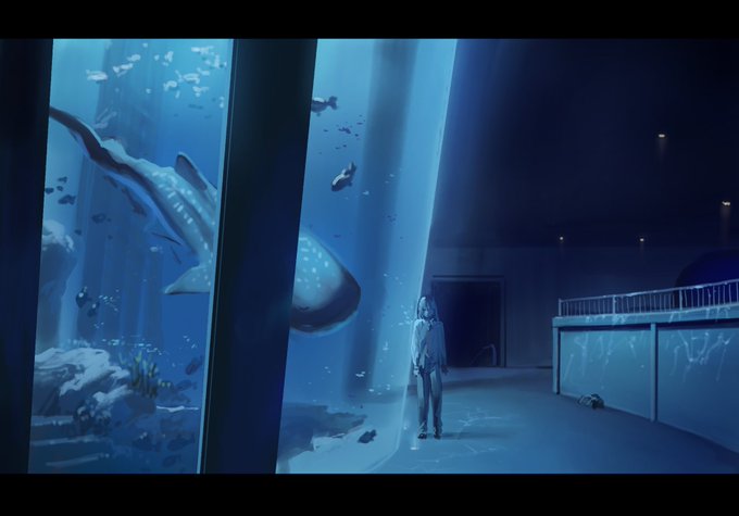 39 260 お題:水族館 いつも放課後に来る男子校生実は人に化けてる魚らしい… #背景版深夜の真剣お絵描き60分一本勝負 20/11/07 22:03