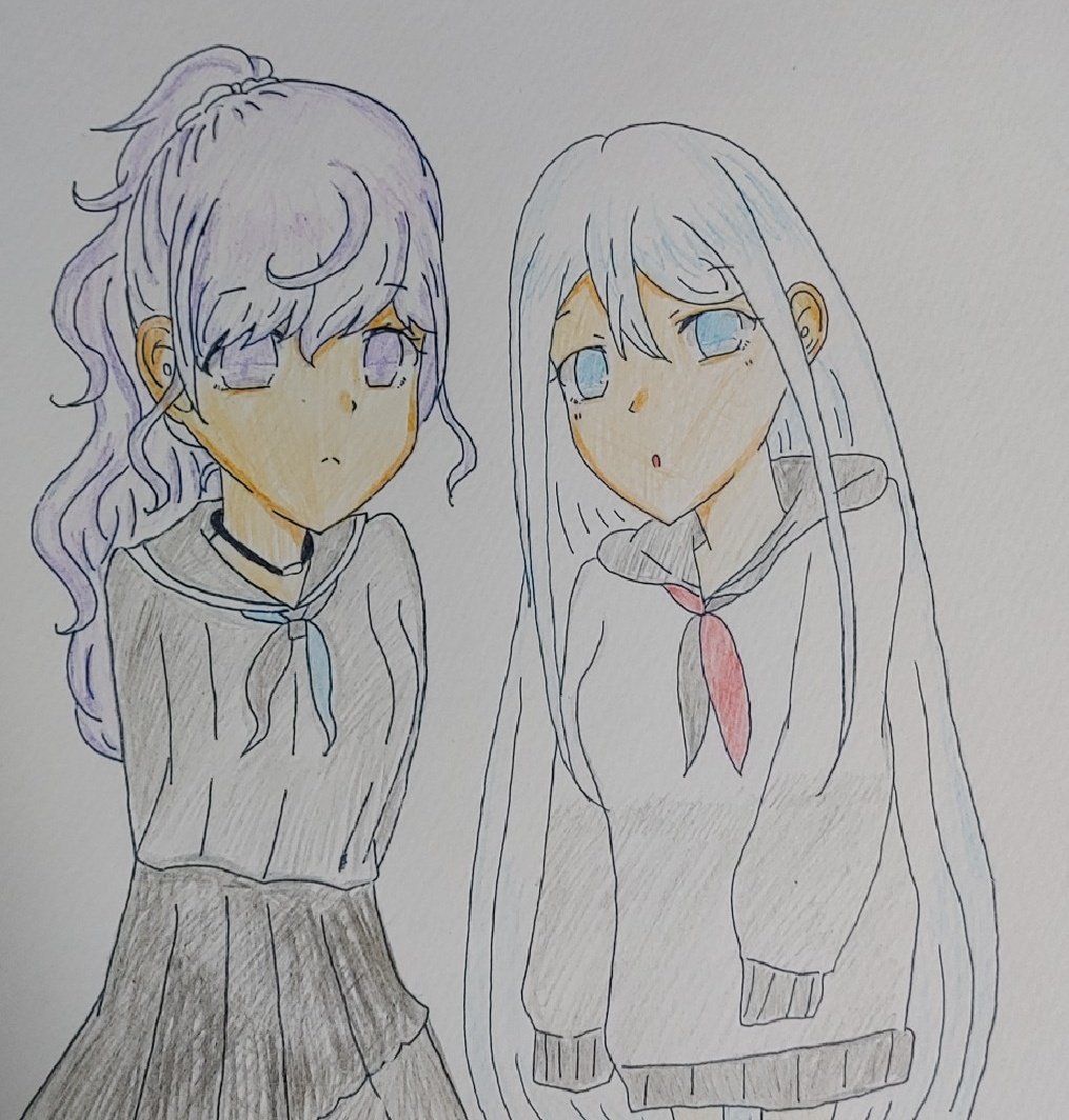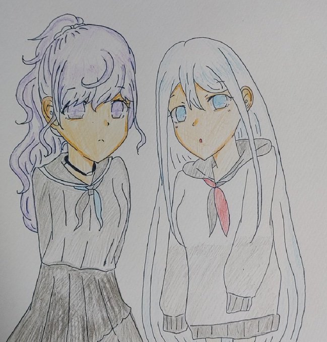 色鉛筆で塗った宵崎奏と朝比奈まふゆです。 #宵崎奏 #朝比奈まふゆ #ニーゴ #25時ナイトコードで #描いてみた #イラスト #イラスト練習中 #無償絵師 #絵師 #イラスト依頼 #無償依頼