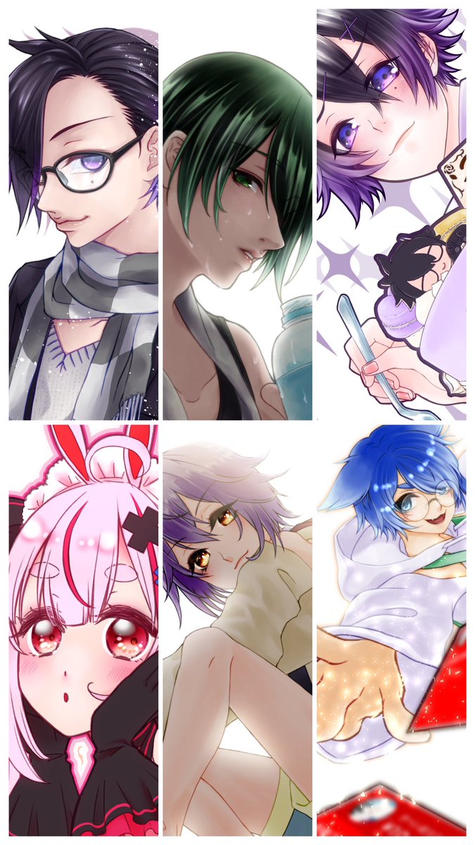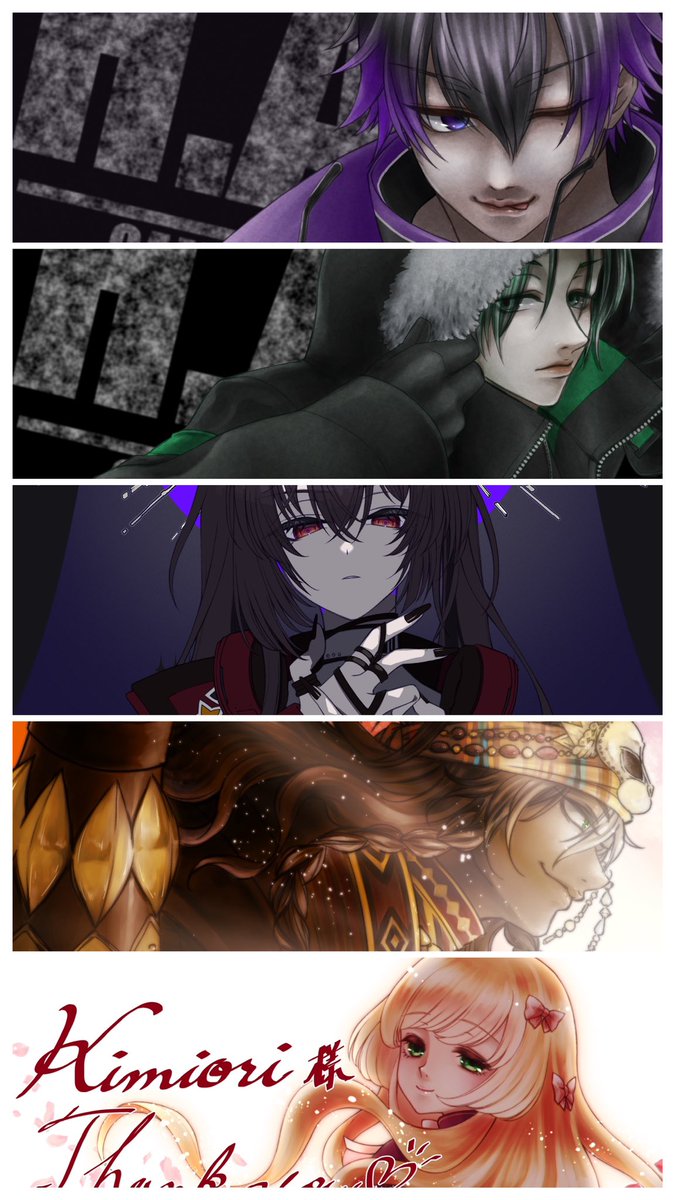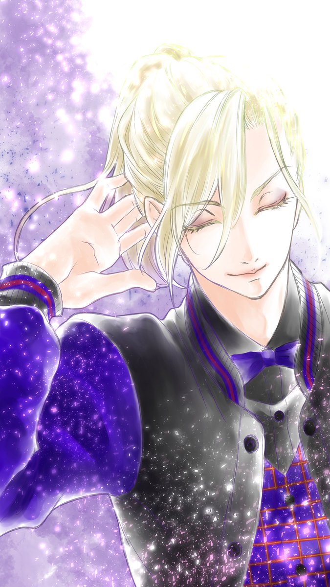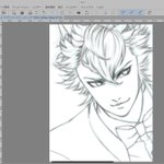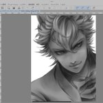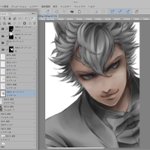 #ツイステファンアート #イラストメイキング 一枚目:ラフ兼下書き。二枚目:線画。清書した線画をコピーしてガウスぼかしして結合(数値はお好み) 三枚目:線画レイヤーの下に白黒グレーで下地塗り。これで絵の8割くらいが決まる。四枚目:各パーツのマスクファイル(オーバーレイ)を作って色塗り。→