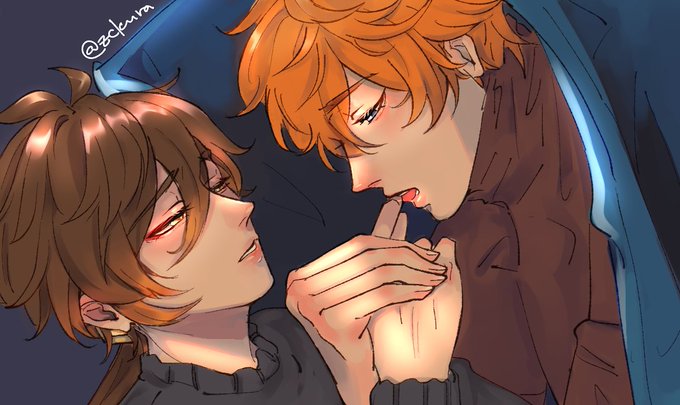 they cuddling outside the kamisato estate as we speak #thomato #トマ人