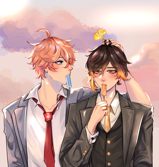 289 1196 happy zhongli day!!!!!!!! 🎉🎉🎉 childe came back to be the first to wish him 👨❤️💋👨 #tartali #タル鍾 #鍾離生誕祭2021 21/12/31 01:00