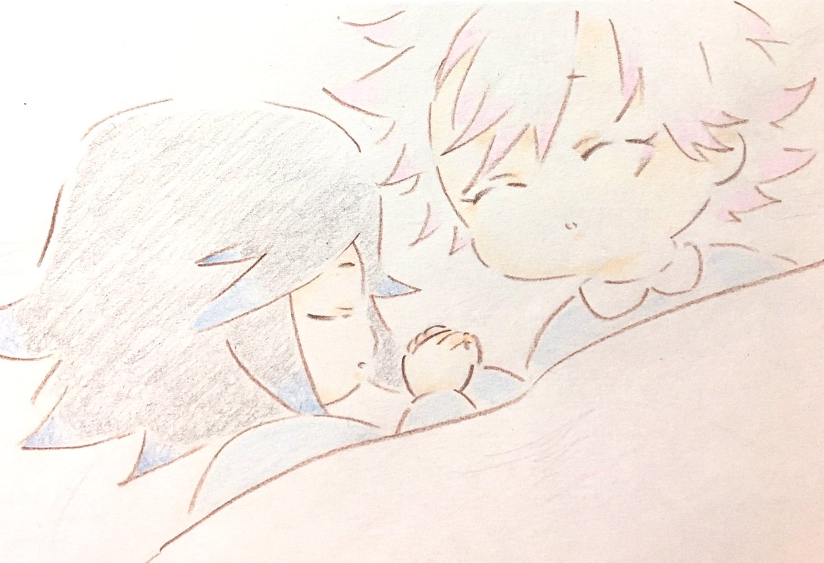 #ぎゆさね版深夜の真剣60分一本勝負 運営様いつもありがとうございます お題[寝顔]をお借りしました ⚠️ショタ(幼稚園児) ⚠️❤️と🦋は先生です ❤️「キャー、おてて繋いで寝てるー 可愛いわー💕」 🦋「しー、2人とも起きちゃいますよ?フフフ、でも愛らしいですね」