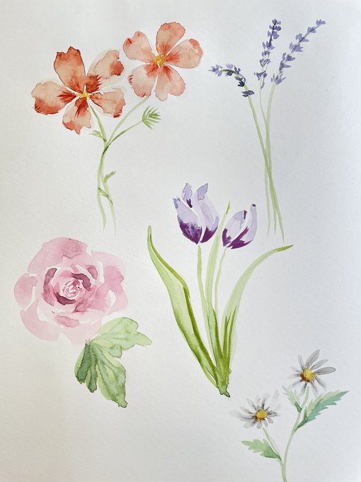 0 1 YouTube見ながら 水彩画お勉強。 難しいけど楽しい♫ #お絵描き #水彩画 #花の絵 23/04/11 14:17