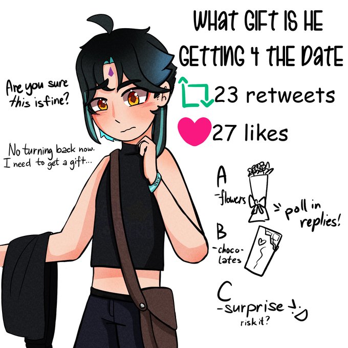 Almost there! Help him pick out a gift before we meet up with his date 🫶 #xiao #genshinimpactfanart