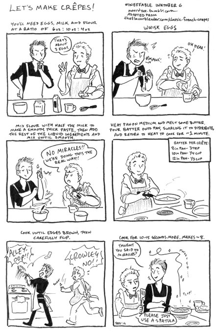 #IneffableInktober 6 is crepes, so I made some and then drew a little recipe comic based off this one: theflavorbender.com/classic-french… The inking is a little less polished than I'd like, guess yesterday's took a lot outta me :'D #GoodOmens #Inktober2019