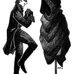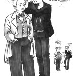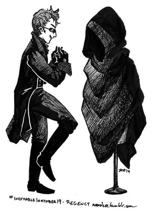 Trying to catch up on #Inktober! For #IneffableInktober 19, Regency, I drew the bit from the deleted bookshop scene where Crowley acts out a menacing conversation with, um, a “demon,” because I don’t think we talk about that enough. #goodomens
